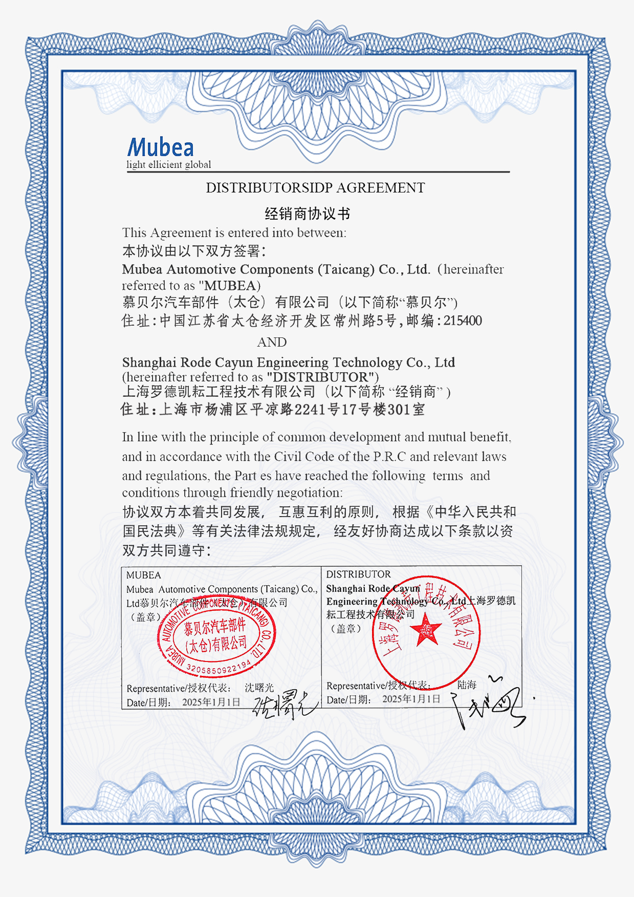 碟簧代理资质证书